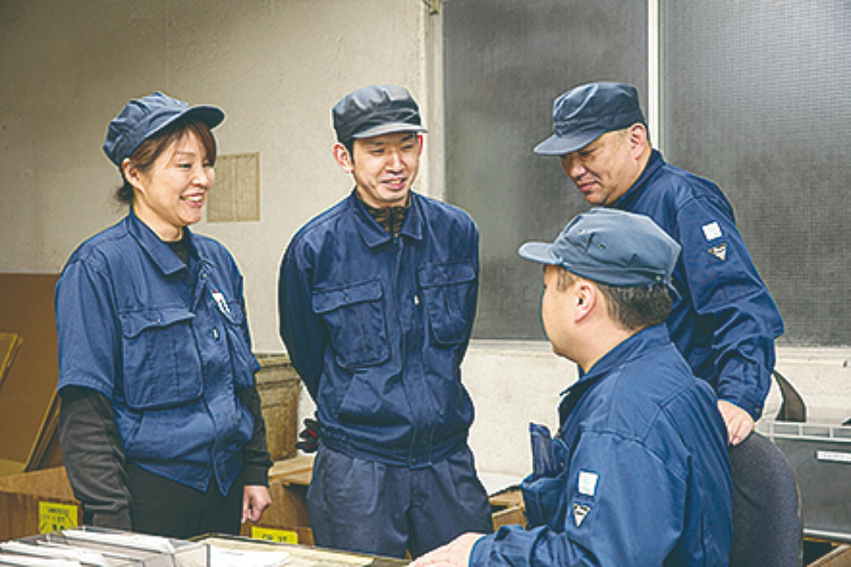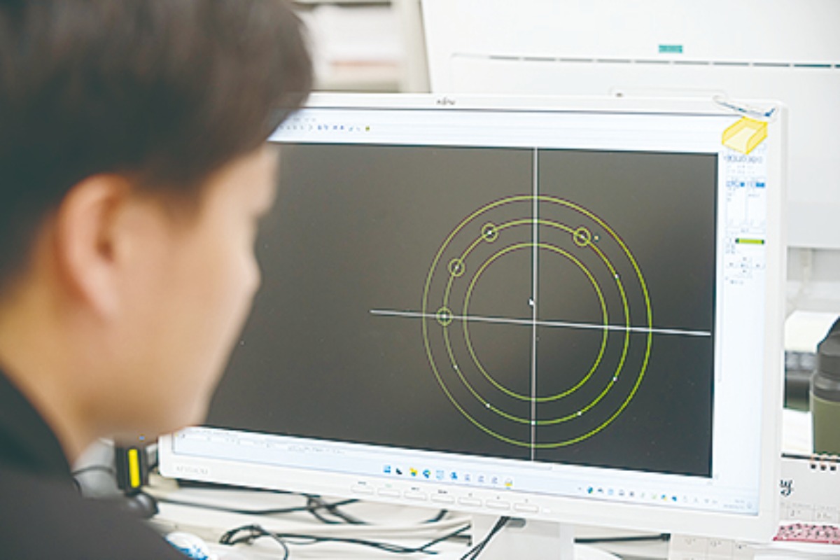 全社員がCADで作図ができる連携の良さが自慢。新規商品の開発時は製造現場のスタッフに直接相談することも。