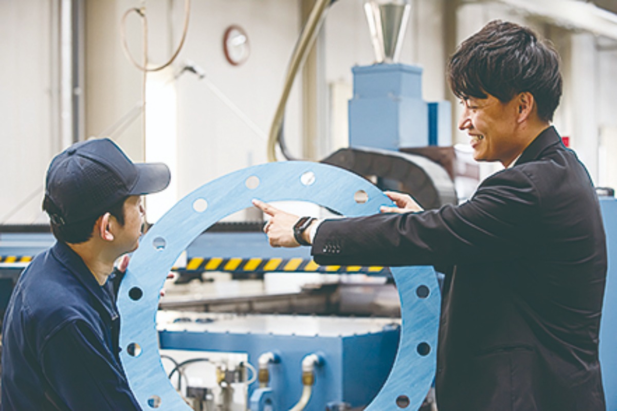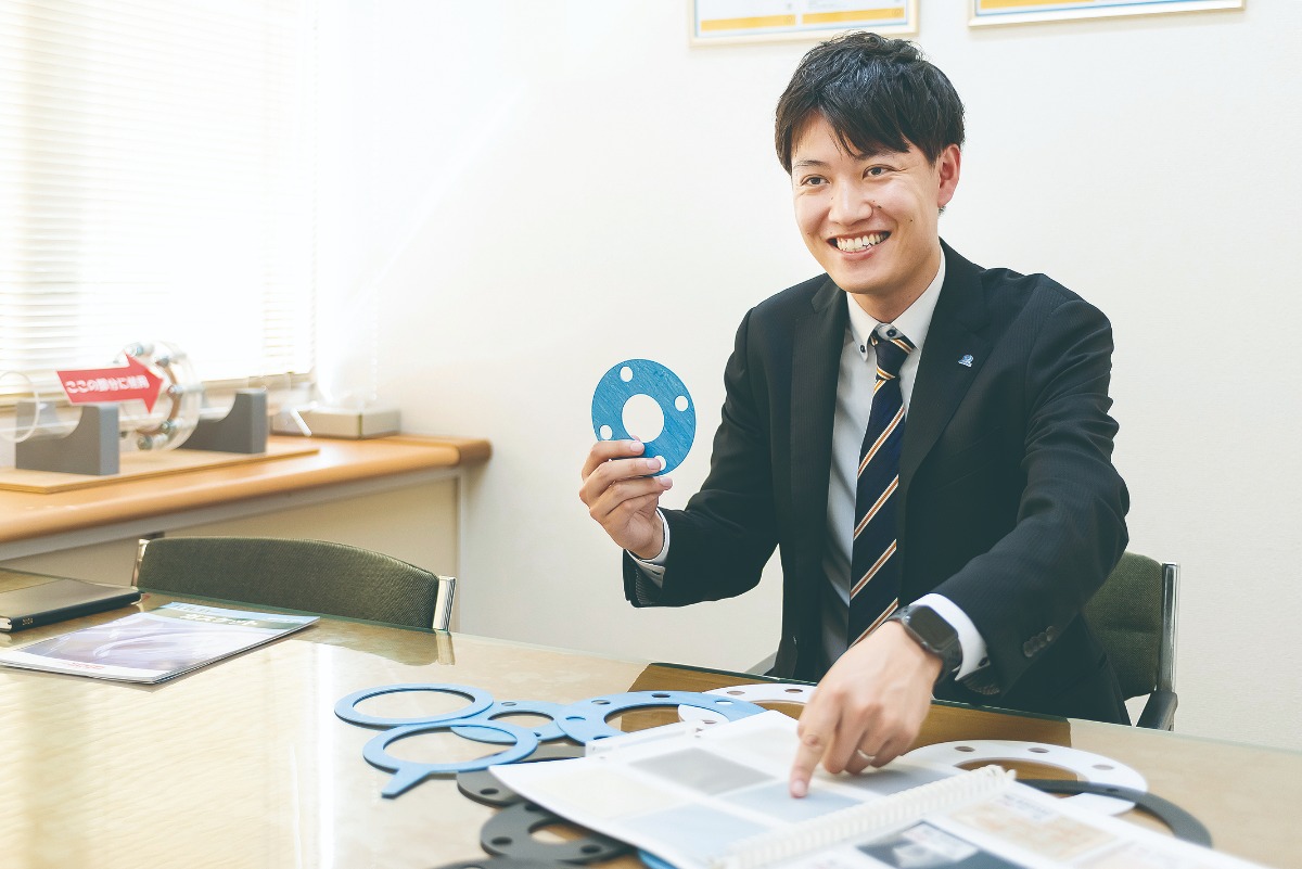 今では西条営業所のエースとして、造船会社に主力商品のガスケットの提案をしている。