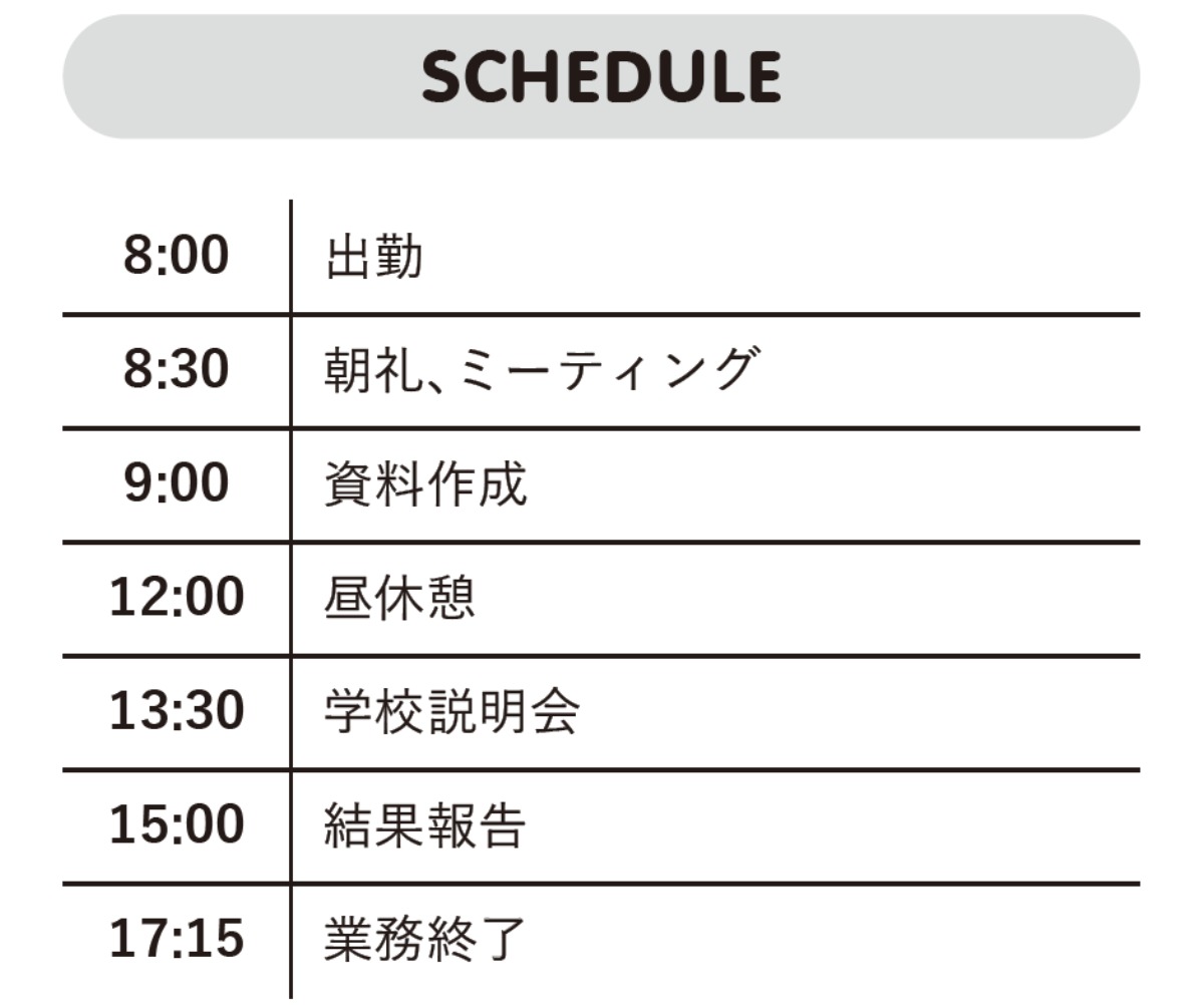 ●勤務時間/8:15~17:00(地域差あり)