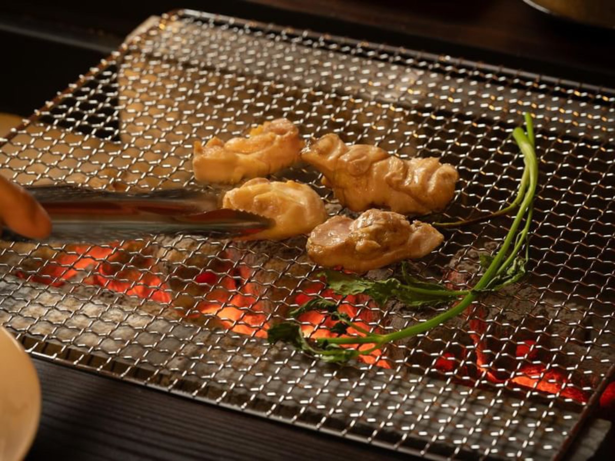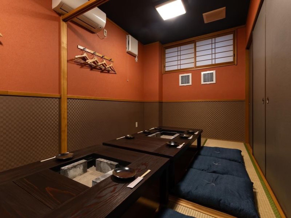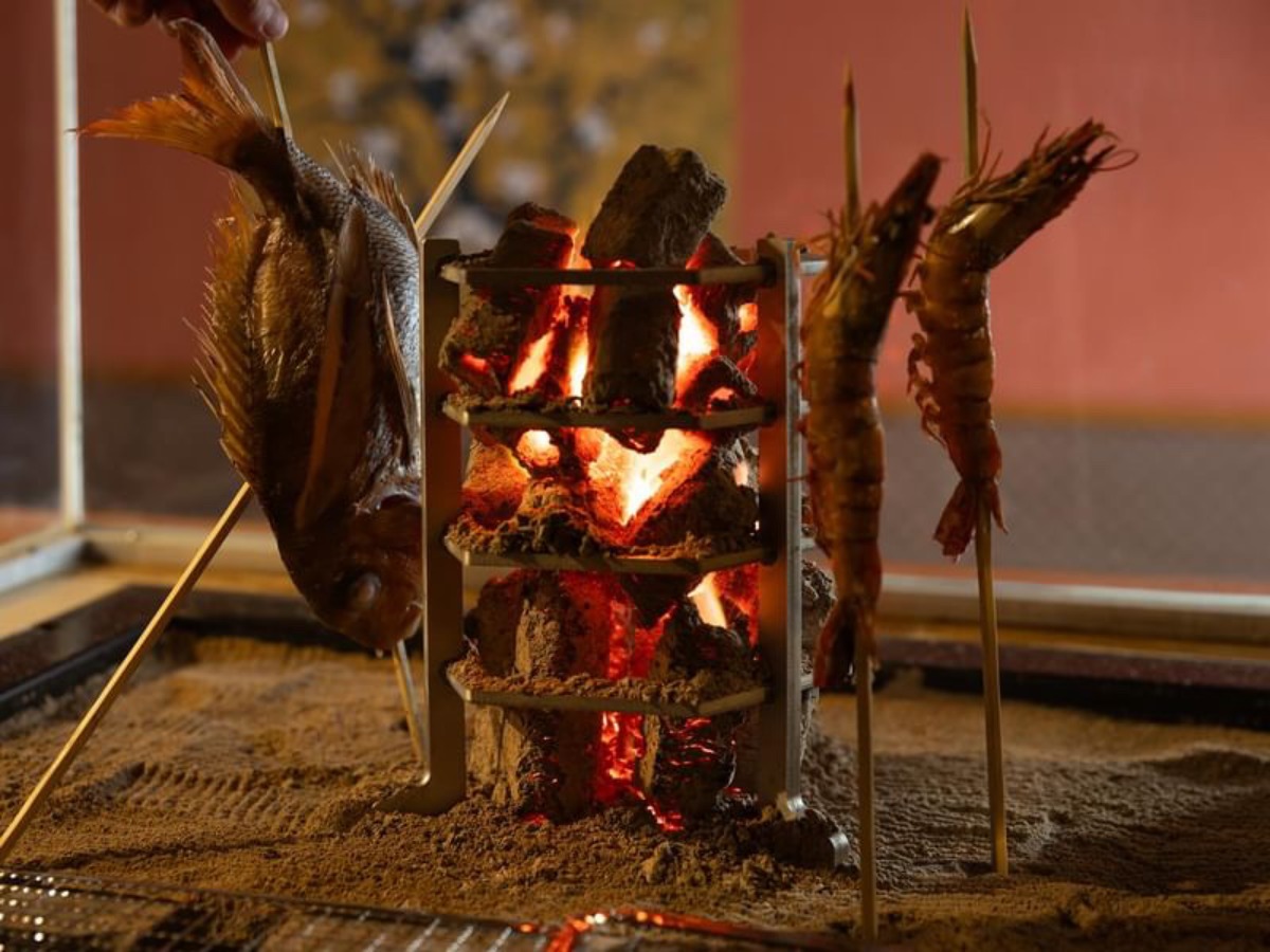全ての個室に囲炉裏を備え、炭火で自分で焼いて食べる体験型の居酒屋。