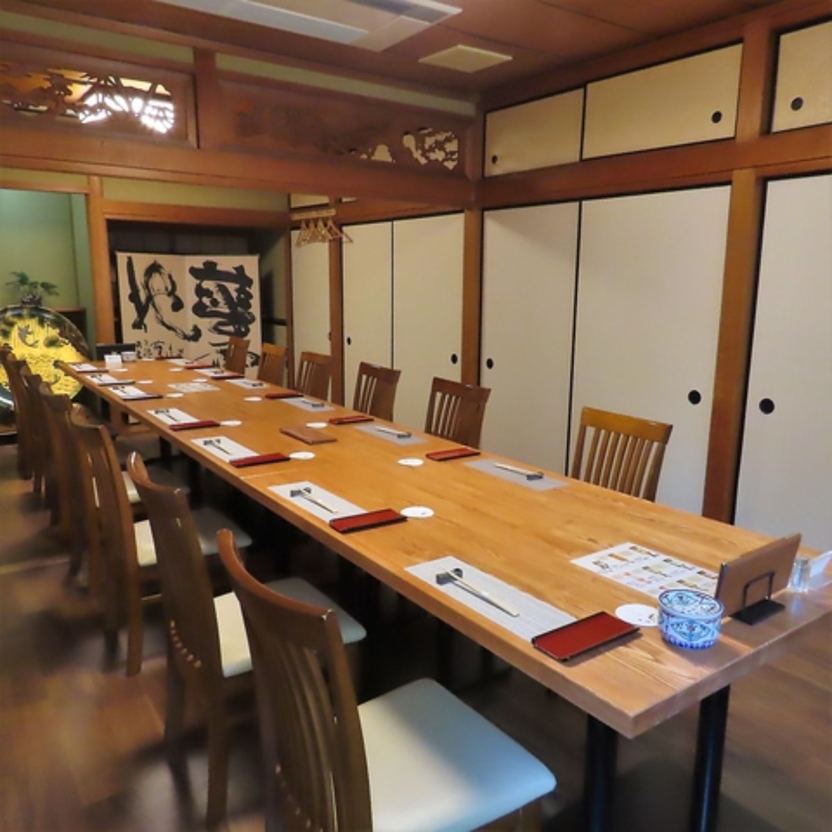広々としたカウンター席や個室テーブル席、掘りごたつの完全個室座敷など、様々なシーンに対応した部屋があり、最大24名様までの宴席も可能なので、接待や宴会、特別な集まりにも最適です。