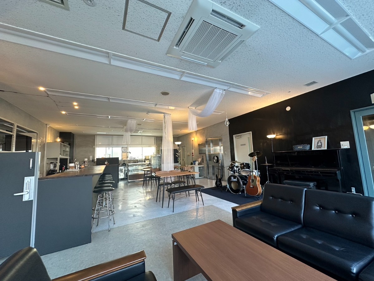 さらに、同じスペースには、ドラムセットやエレキギター、アコースティックギター、アップライトピアノが完備されていて、自由に演奏することができます。