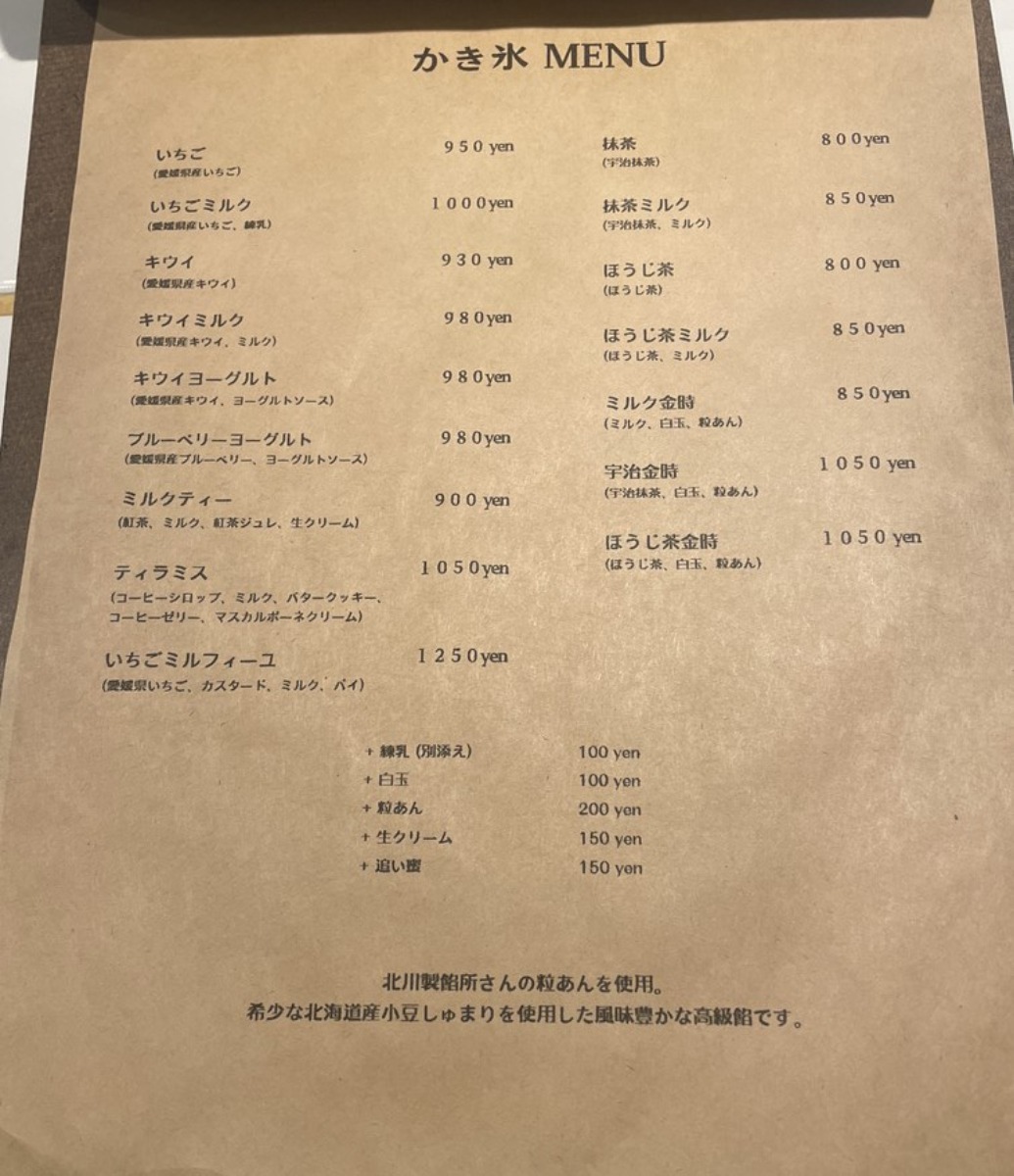 松山市|GOOD TIME STAND(グッドタイムスタンド)|かき氷メニュー