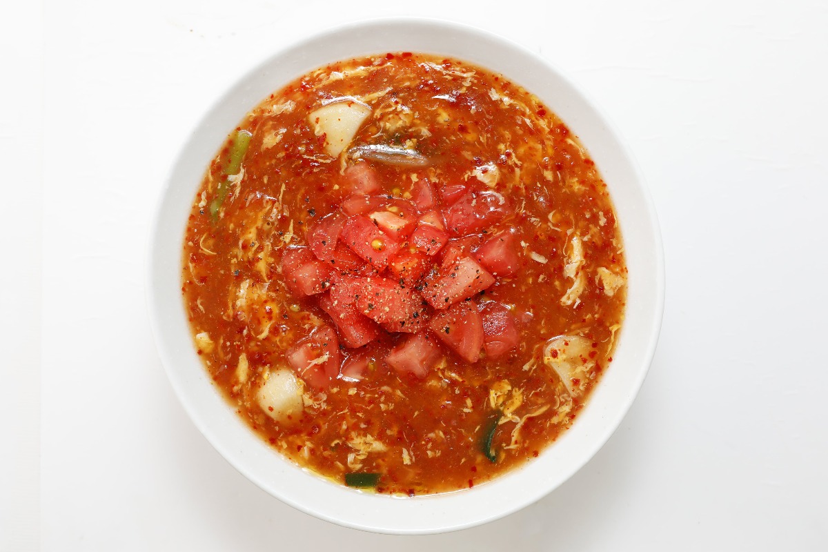 スープにもトマトの旨みを加え、酸味と辛みの融合を楽しめる一杯です。