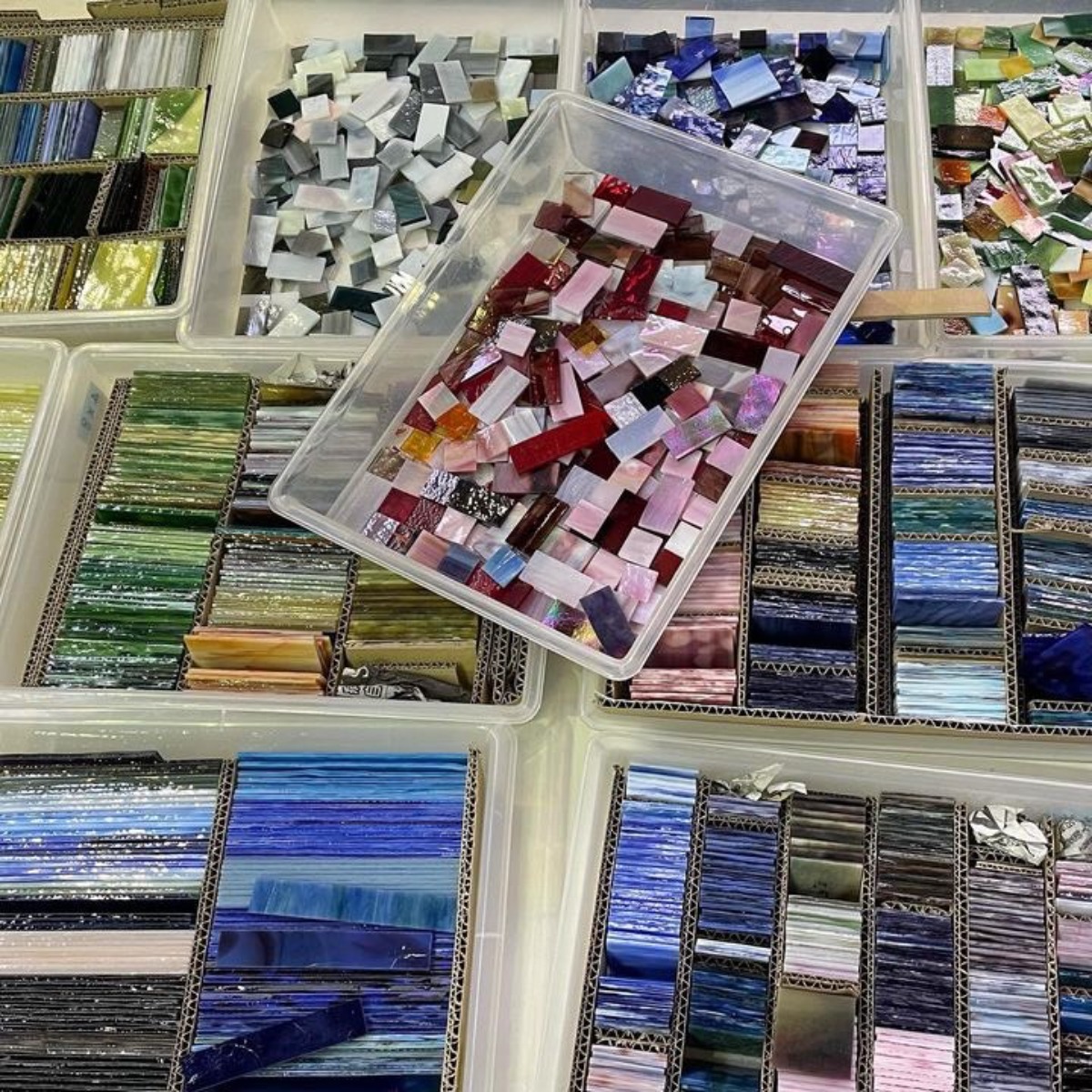 先生たちが事前にデザインしカットした美術画廊出品の貴重なガラスを使って、参加者は色選びから始め、クオリティの高い作品を一日で完成させることができます。いずれか一日の参加で完成し、その日に持って帰れるのが嬉しいですね。ぜひ、自分だけのステンドグラス作品を作ってみてください!