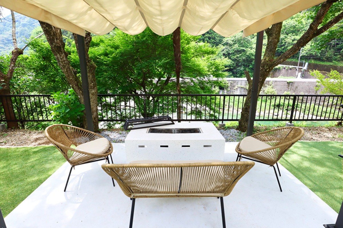 川と緑を楽しむ庭付きの一棟貸切コテージ