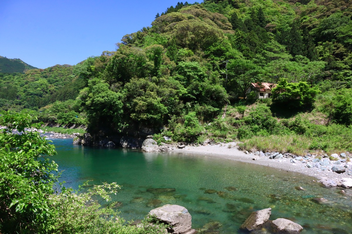 ⼭間の⽊々が織りなす緑(Verde)と、 仁淀川へ流れる⽀流の美しい⻘(Blu)を、⼼ゆくまでお楽しみください。