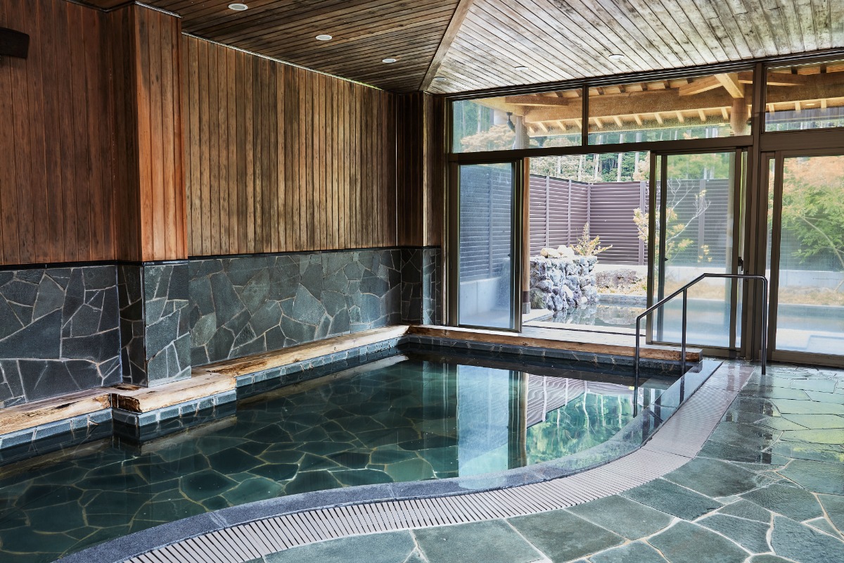 施設内には、「美人の湯」や「化粧の湯」として名高い低調性弱アルカリ性冷鉱泉の温泉もあります。プライベートで温泉を楽しめる家族風呂もありますよ。