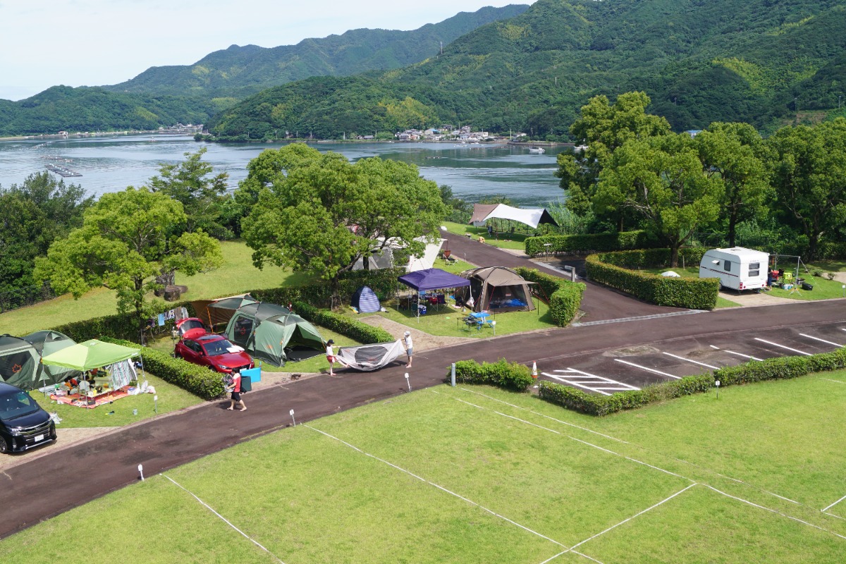 四国最大級のマリーナのエリア内にあり、全面芝生で整備されたキャンプ場。