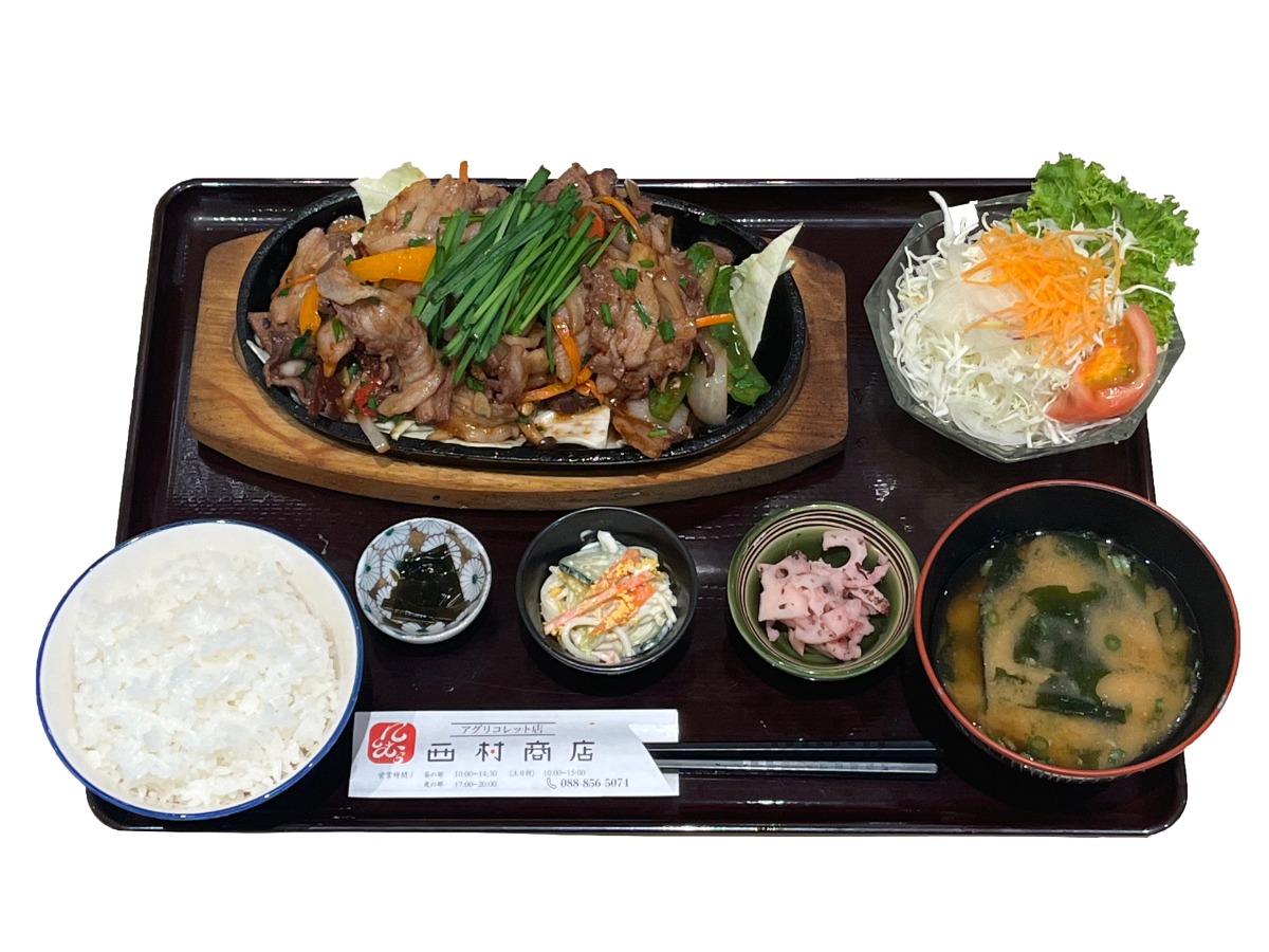 佐川町産のニラと地元でとれた猪を使用した「佐川猪のニラ味噌だれ定食」(1,630円)は佐川店限定メニュー!