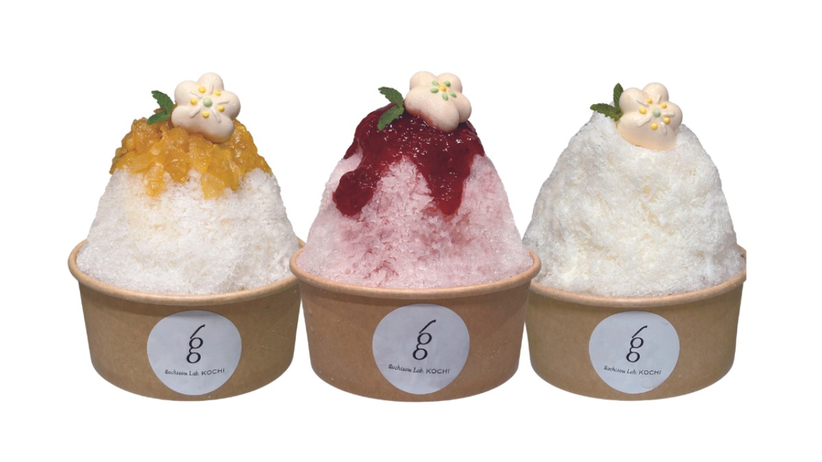 佐川の“ごちそう食材”で作った「まきのさんのかきごおり」は佐川のゆめのかいちごなど全5種。