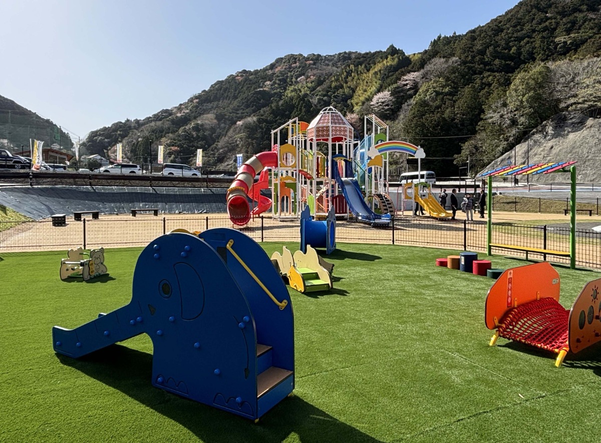 隣接地には、ふわふわドームなどを備えた遊具公園があり、大人から子どもまで楽しむことができます。