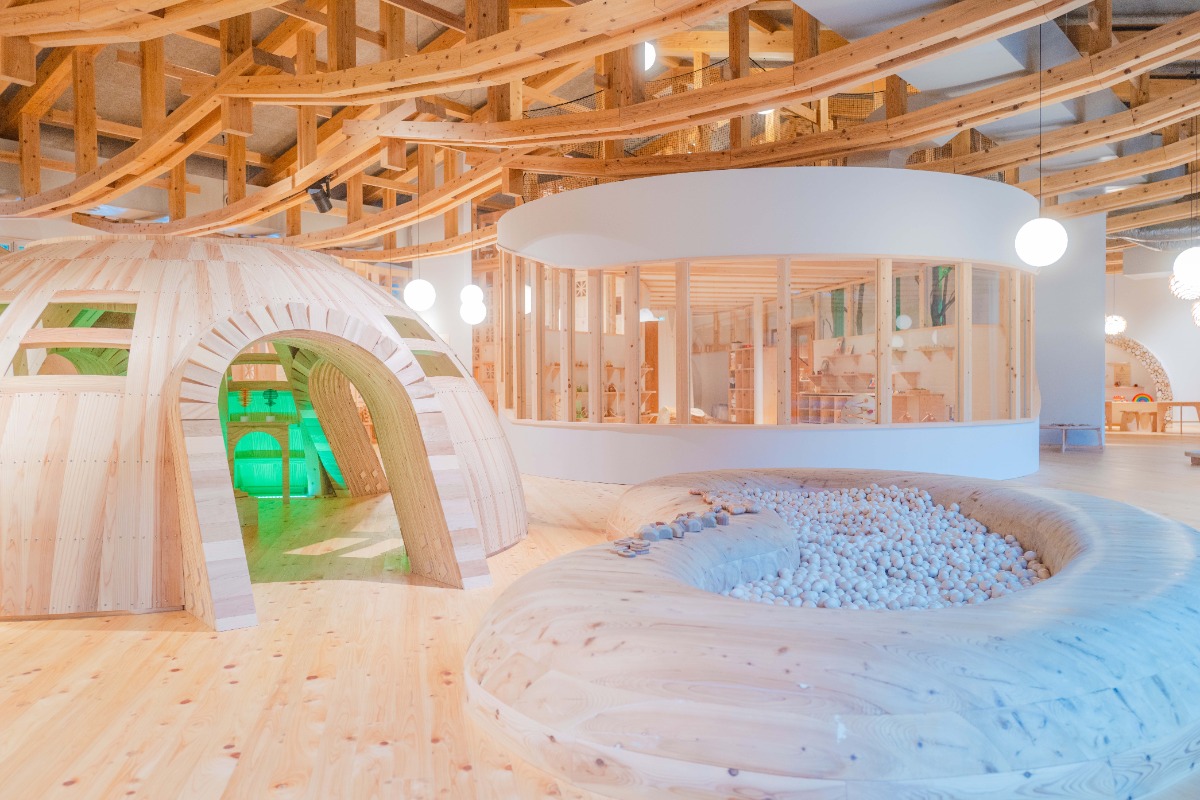 「木育」×「植育」をコンセプトに、赤ちゃんにも安心なおもちゃや木の遊具、大人も楽しめる世界のゲームなどで遊ぶことができます。