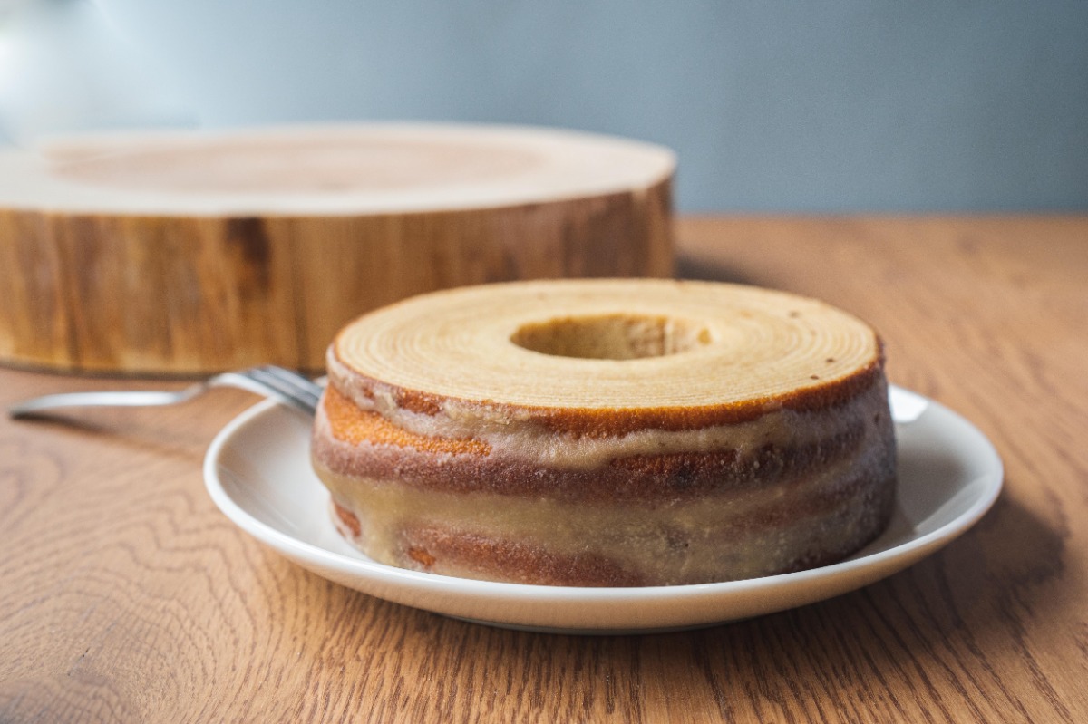 道の駅内で製造する、佐川町産米粉100%のオリジナルバウムクーヘン。
