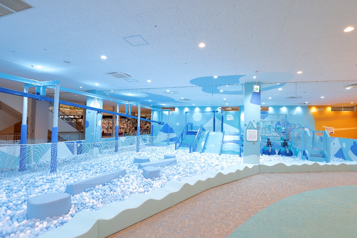 氷山をイメージしたボールプールと遊具が広がるエリア。