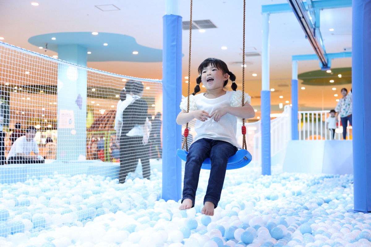 ターザン気分でひとっ飛びできる国内最長クラスのレールグライダー、雪のようにボールシャワーが降ってくる氷山スライダー、的を狙ってボールを発射する大砲、ぐらぐら揺れる海の上の氷のようなアスレチックなど、ダイナミックに遊べる遊具が揃います。
