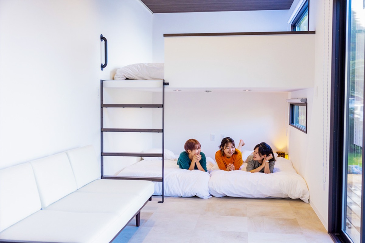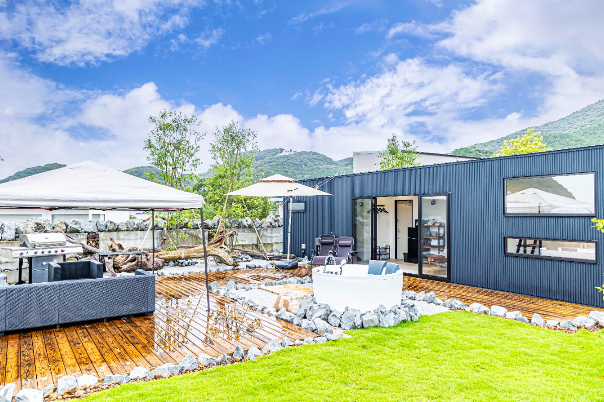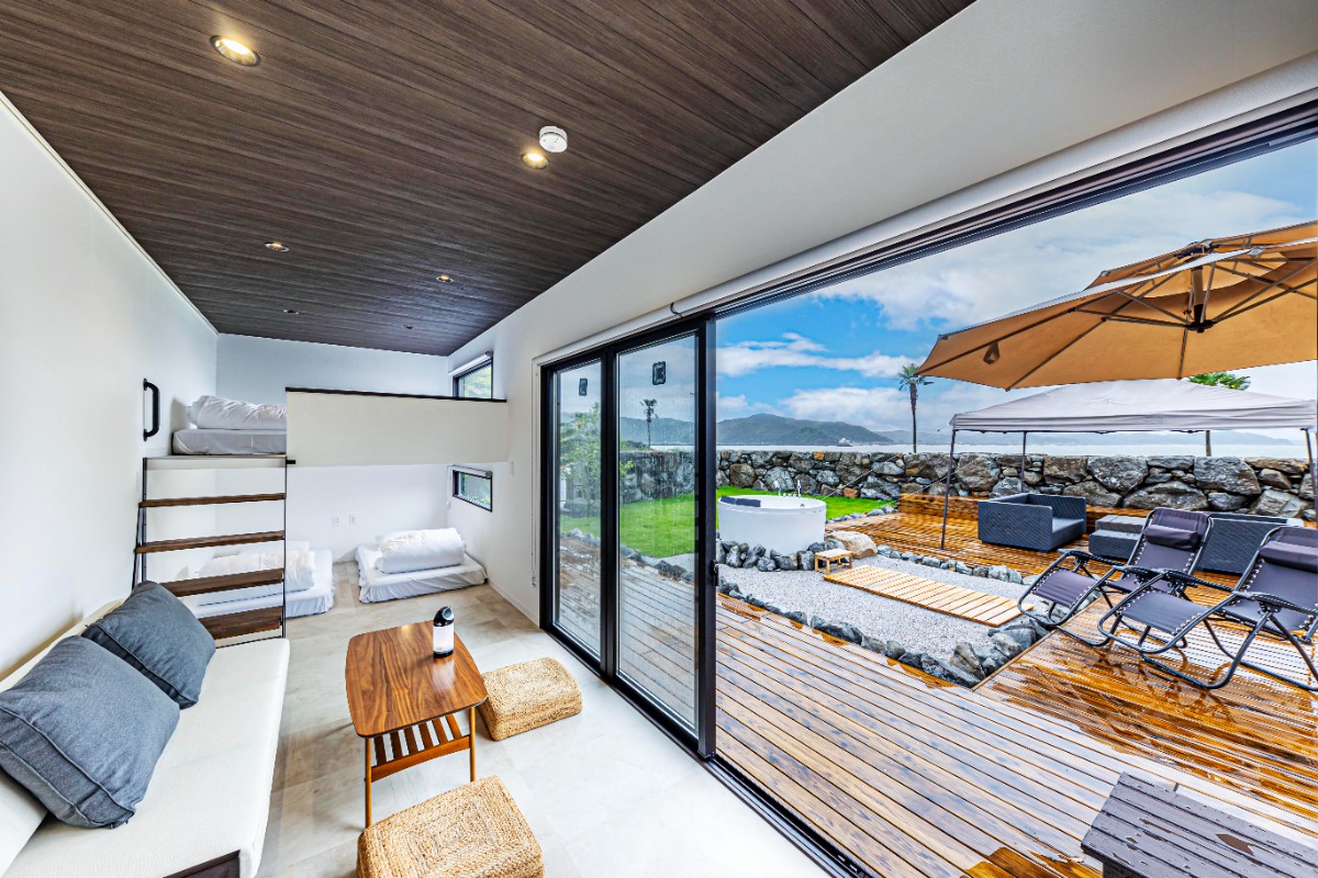 1棟貸し切りタイプのトレーラーハウスを、海沿い・山沿いにそれぞれ面した全4棟完備。