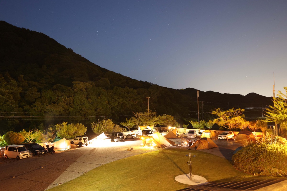 運動場をキャンプ場に整備し、自然豊かな環境で贅沢なひとときが過ごせる。