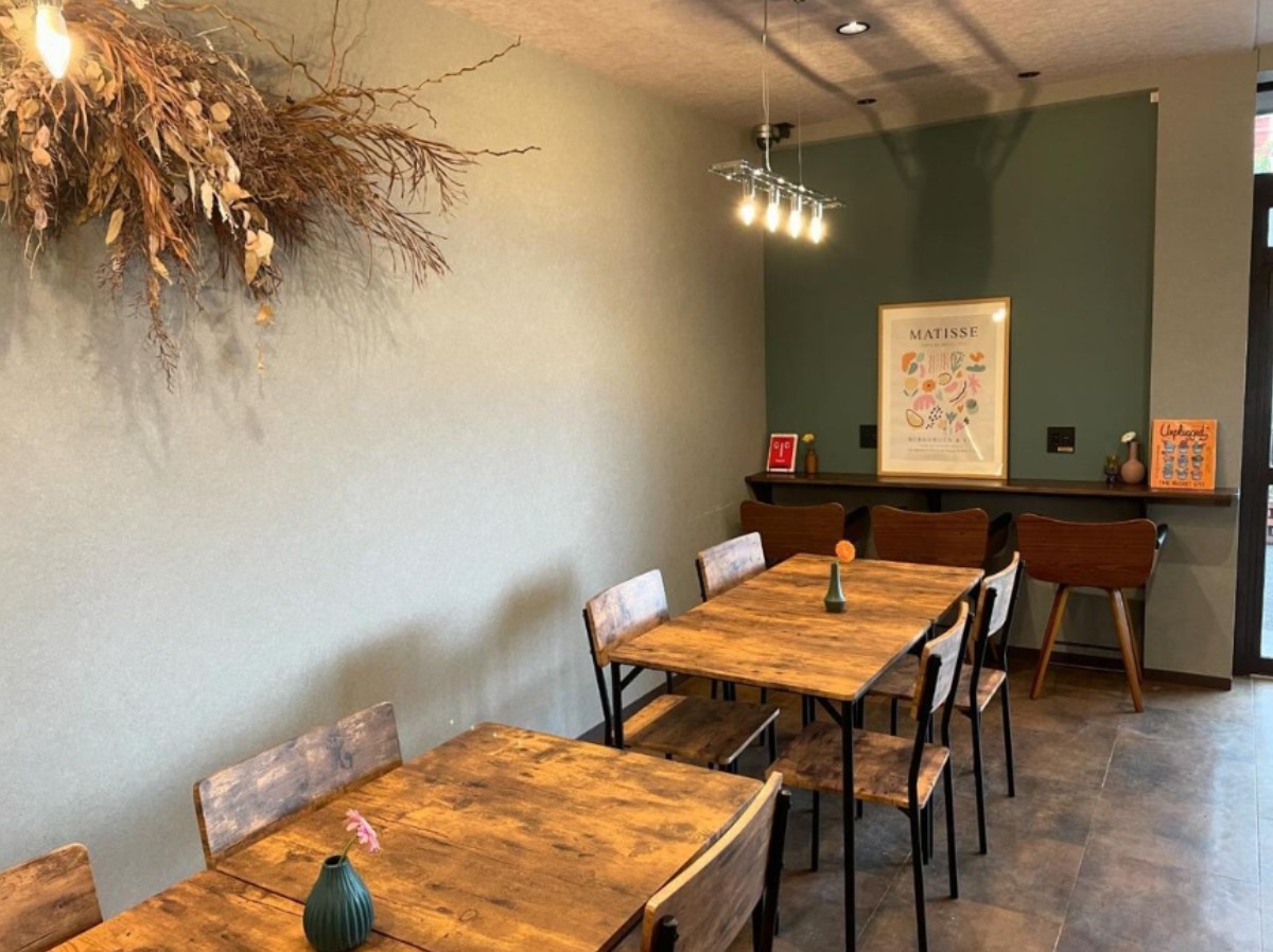 店内は、温かみのあるウッド調のインテリアで統一されています。照明や所々にあるイラストや植物も可愛いんです。