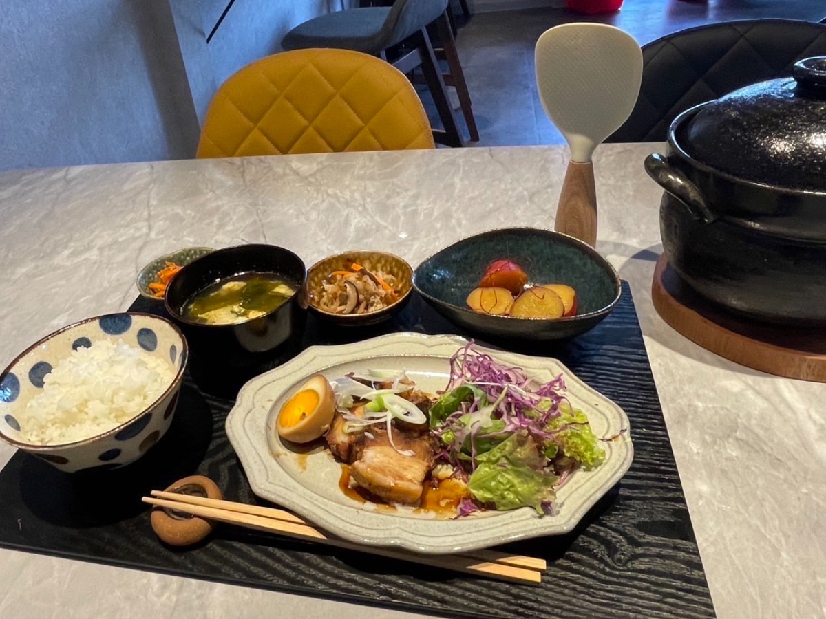 土鍋のふたを開けた瞬間に広がる、ごはんの香りが食欲をそそり、メインのおかずはハンバーグやエビマヨなどを日替わりでいただけます。
