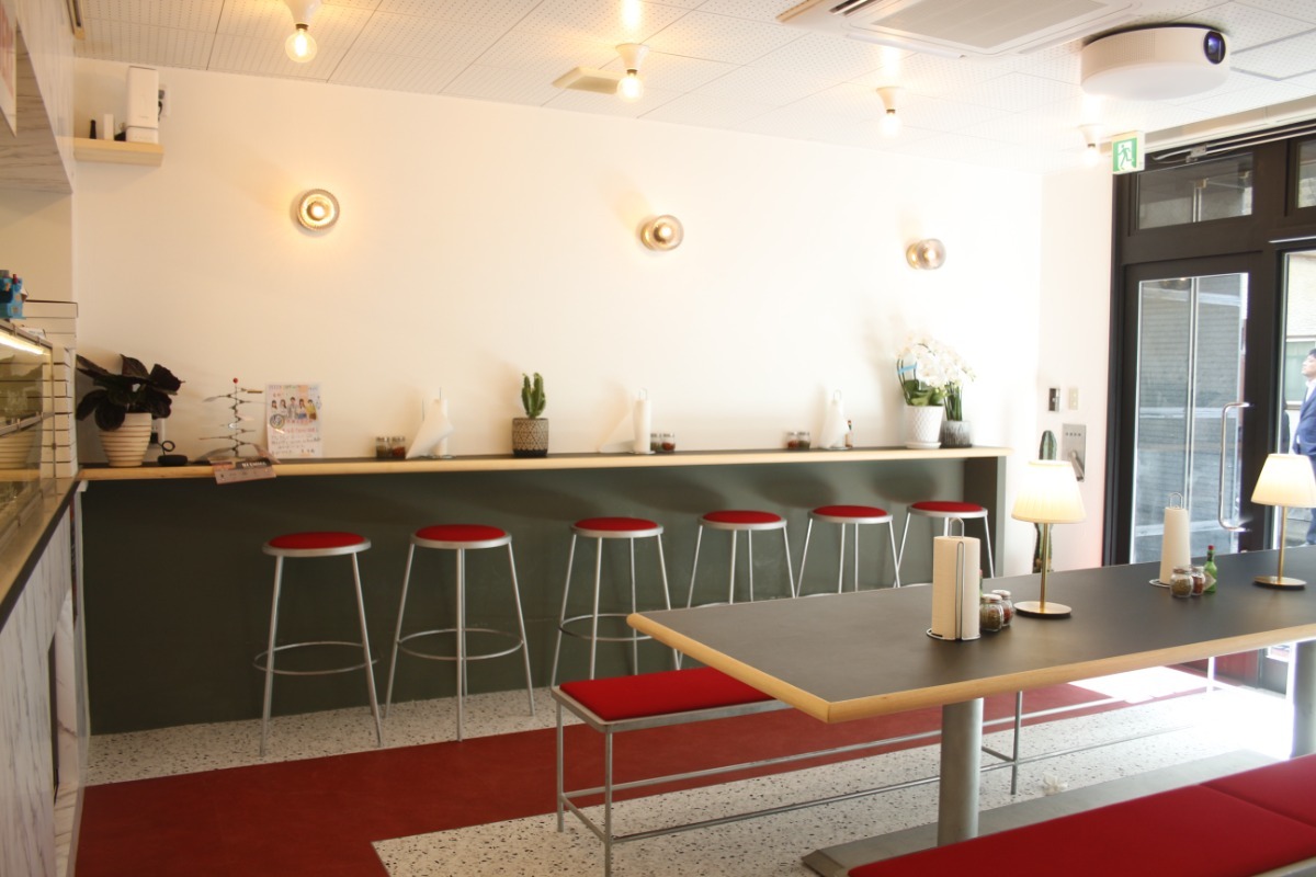 アメリカをイメージしたカジュアルでポップな店内には、テーブル席とカウンター席があります。