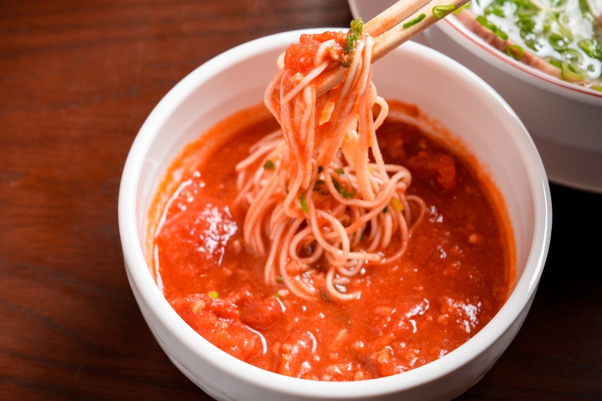 トマトがしっかり煮込まれているので麺によく絡み、甘みとほどよい酸味がクセになります!