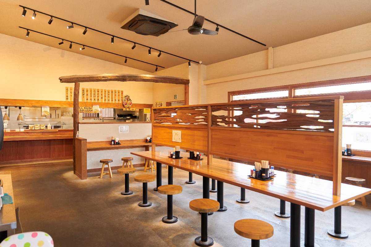 奥には座敷もあり、広々空間が特長の「つるや製麺所」。