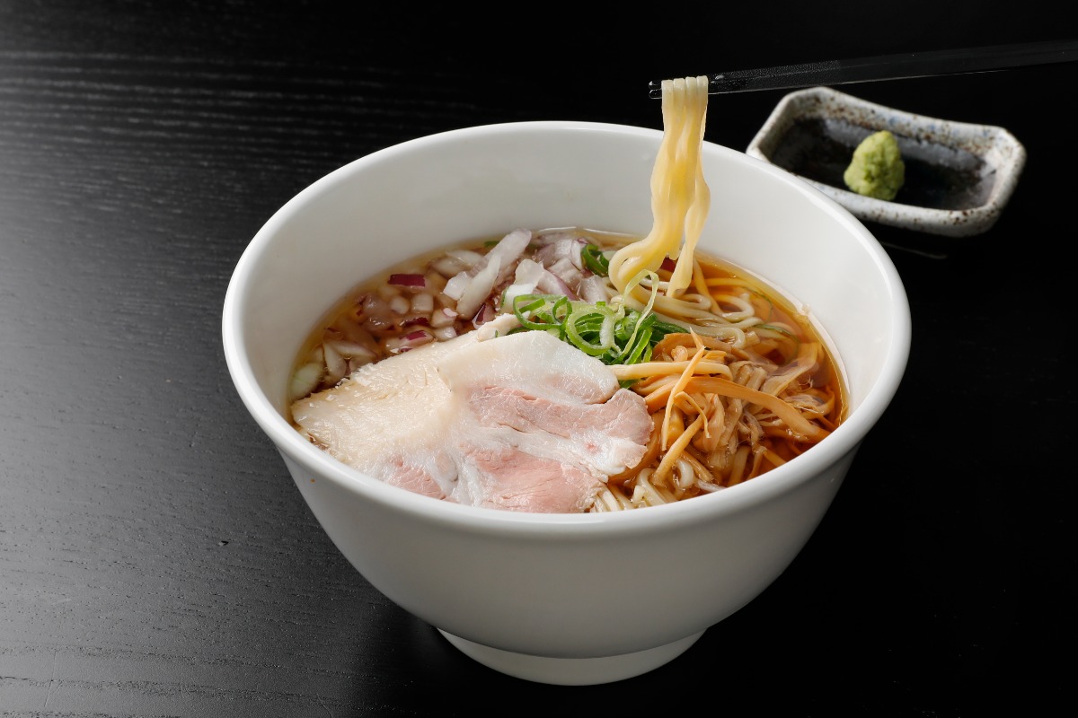 煮干し風味の冷たいスープに、モチモチとした食感かつ固めで、のど越しの良い麺が魅力の中華そば。