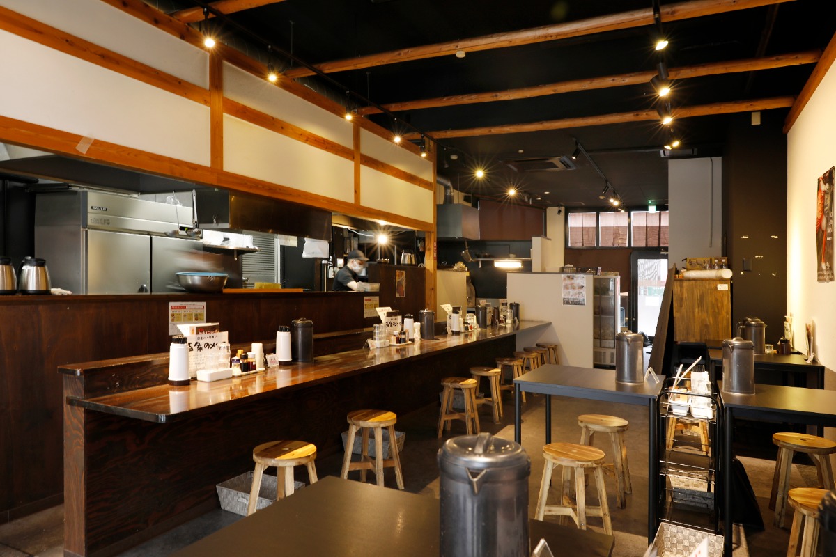 カウンターとテーブルがあり、席の間隔が広いのでゆったりと過ごせる「麺屋もりと」。
