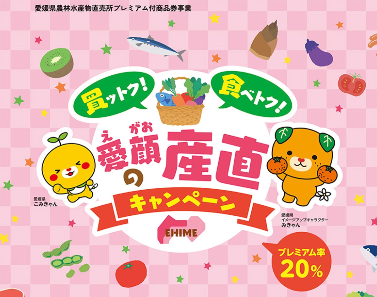 5,000円で6,000円分のお買い物ができ、店頭で直接購入できますので、お得に愛媛県産食材を楽しんでください。