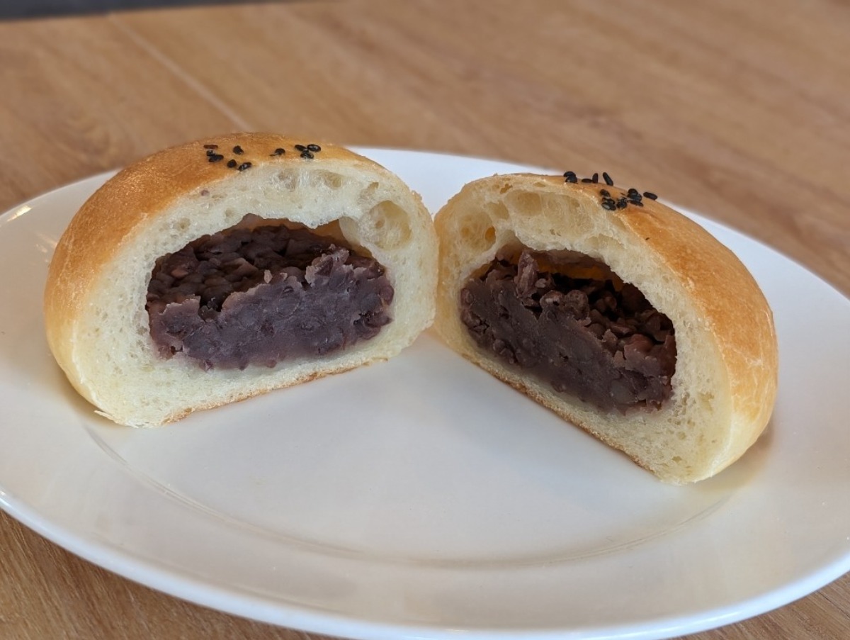 写真のつぶあんぱんは、宇和島市の老舗「山口製餡所」のあんこがたっぷりと詰められており、甘さ控えめで絶妙なバランスが評判です。