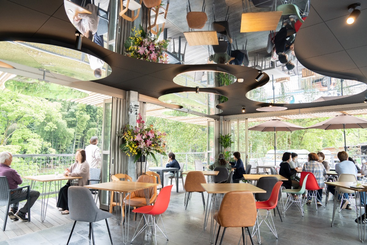 店内は自然光がたっぷりと差し込み、どの席からも異なる景色を楽しめます。