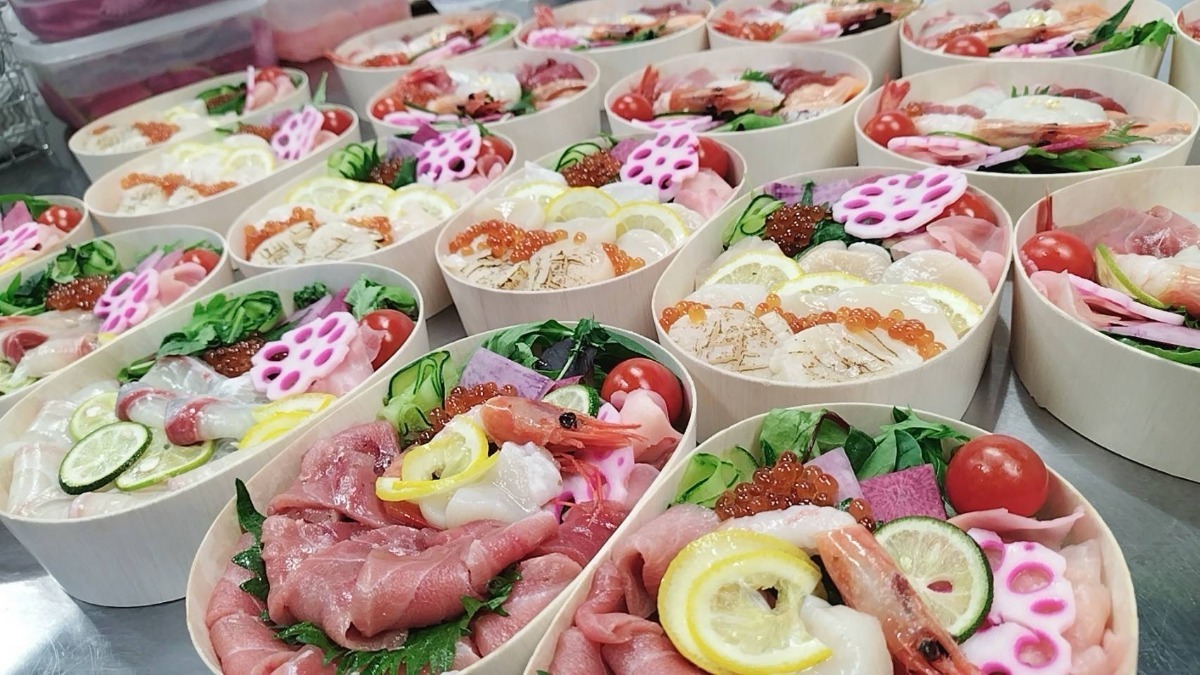 特許を取得した独自の技術で下処理された魚や、近海で獲れた新鮮な魚が、ごはんの上を鮮やかに彩ります。