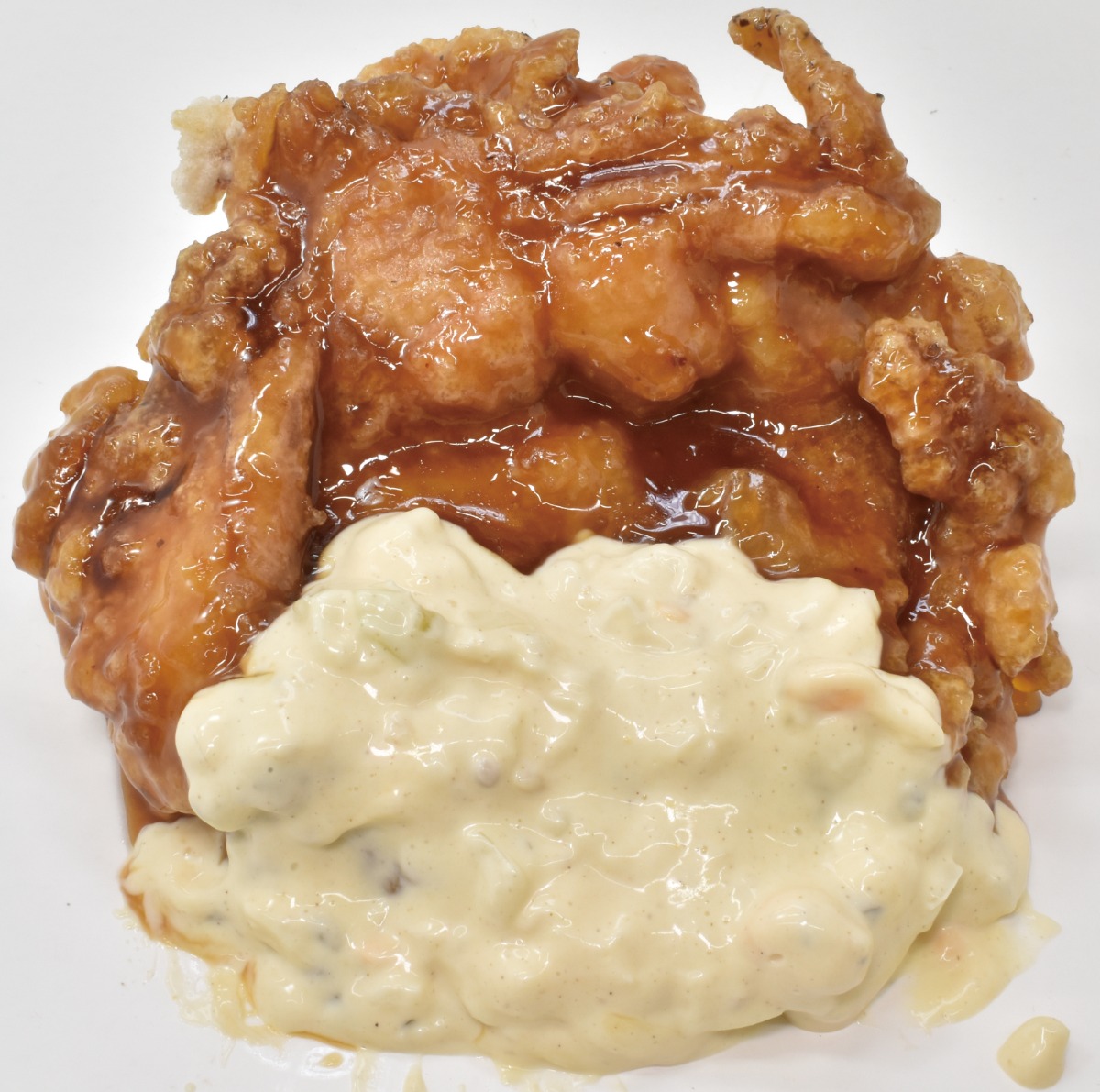 オリジナルの自家製唐辛子スパイスをたっぷりとかけたこの唐揚げは、ピリッとした辛さがご飯との相性抜群。ビールのお供にも最高の一品です。