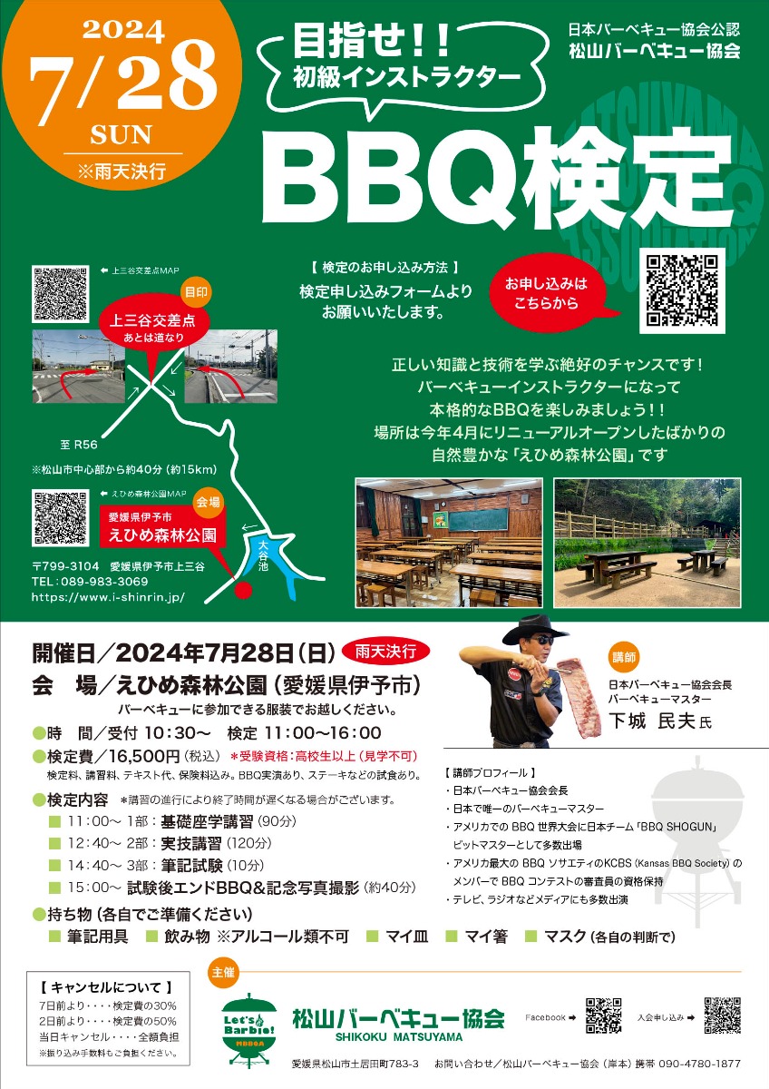 松山市イベント|目指せ初級インストラクター!BBQ検定【7/28】
