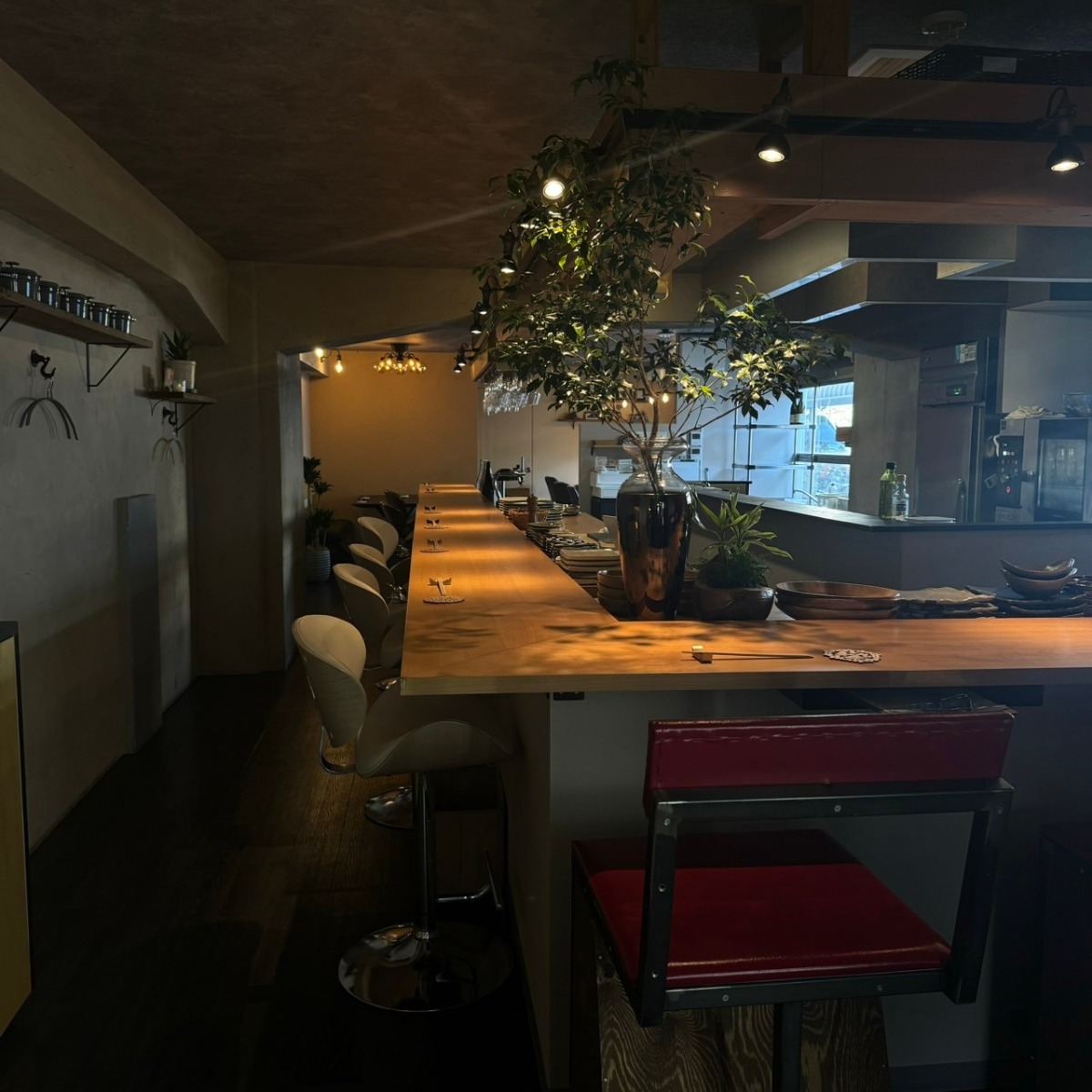 カウンターはオープンキッチンに面していて、調理風景を見ながら食事が楽しめるんです。