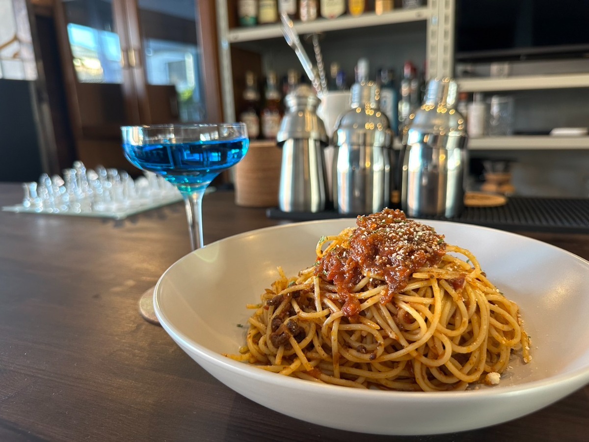 写真は店主のバーテンダーコタク特製・ミートソースのパスタ「コタミート」。