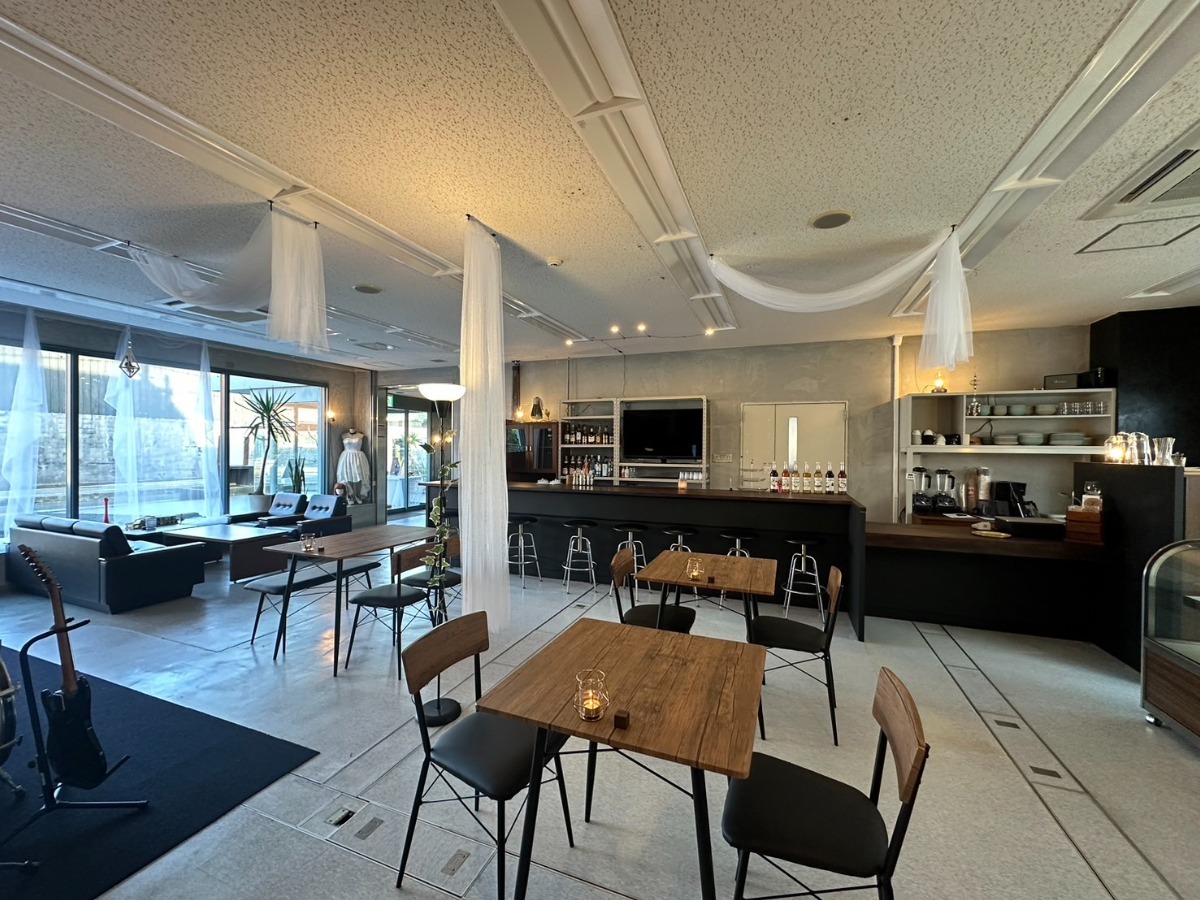 テーブルやカウンター席を備え、最大21名まで着席可能です。