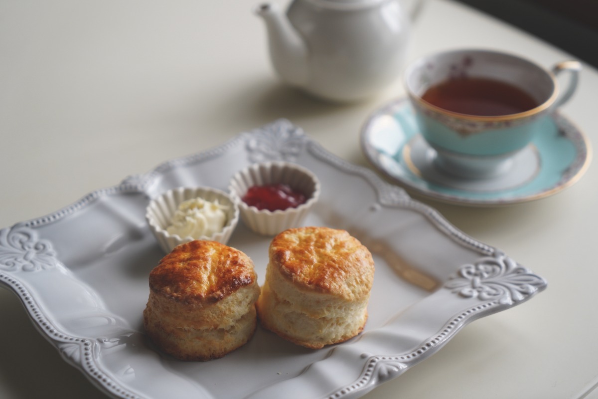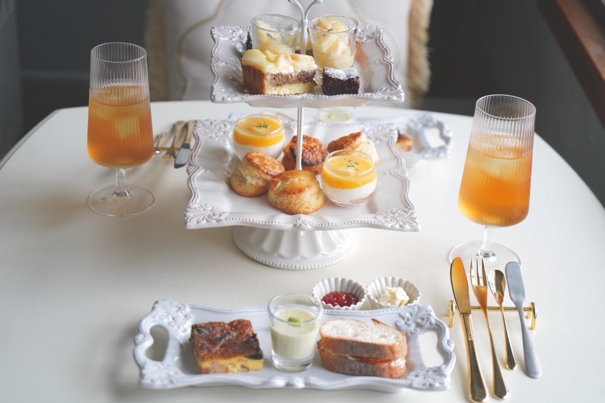 アフタヌーンティーには、サクホロ食感で小麦やバターの香りが口いっぱいに広がるスコーンやタルト、レアチーズムースなど上品な味わいのスイーツが並びます。