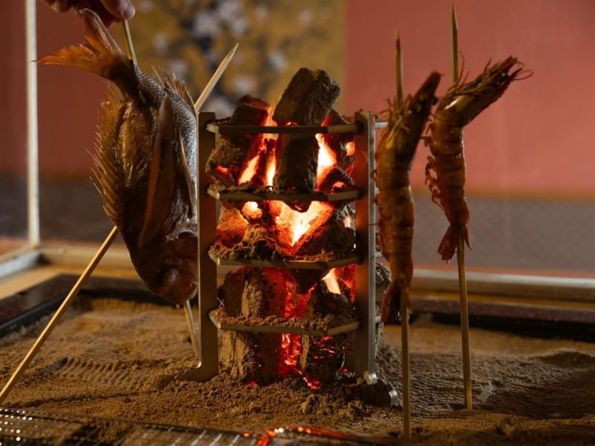 全ての個室に囲炉裏を備え、地元産の新鮮な・旬の食材を炭火で焼いて食べる体験型の居酒屋です。