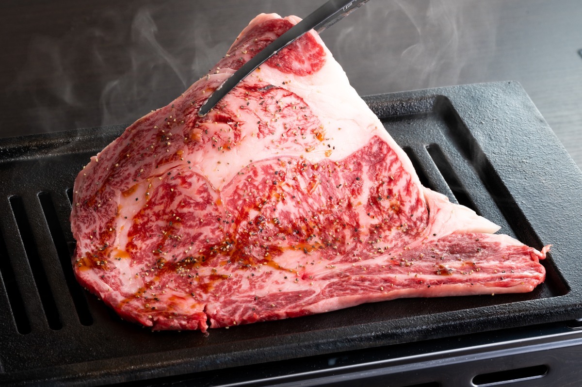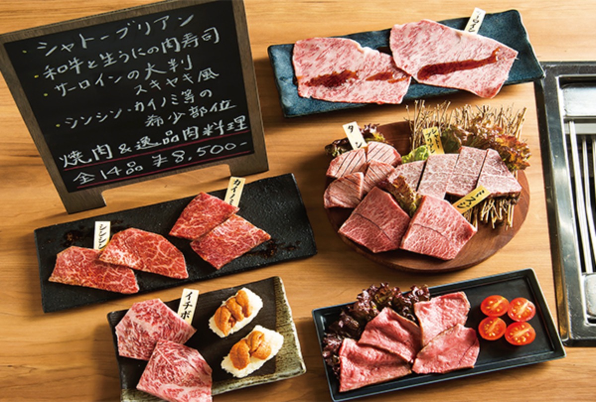 写真は人気メニューの「シャトーブリアン」と「大判極ミスジ炙り焼きすき」。