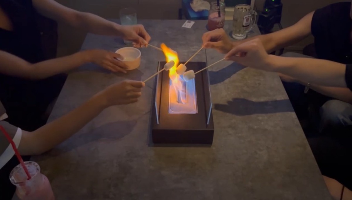 なんと、テーブル暖炉の火で焼きマシュマロが楽しめるサービスがあります!