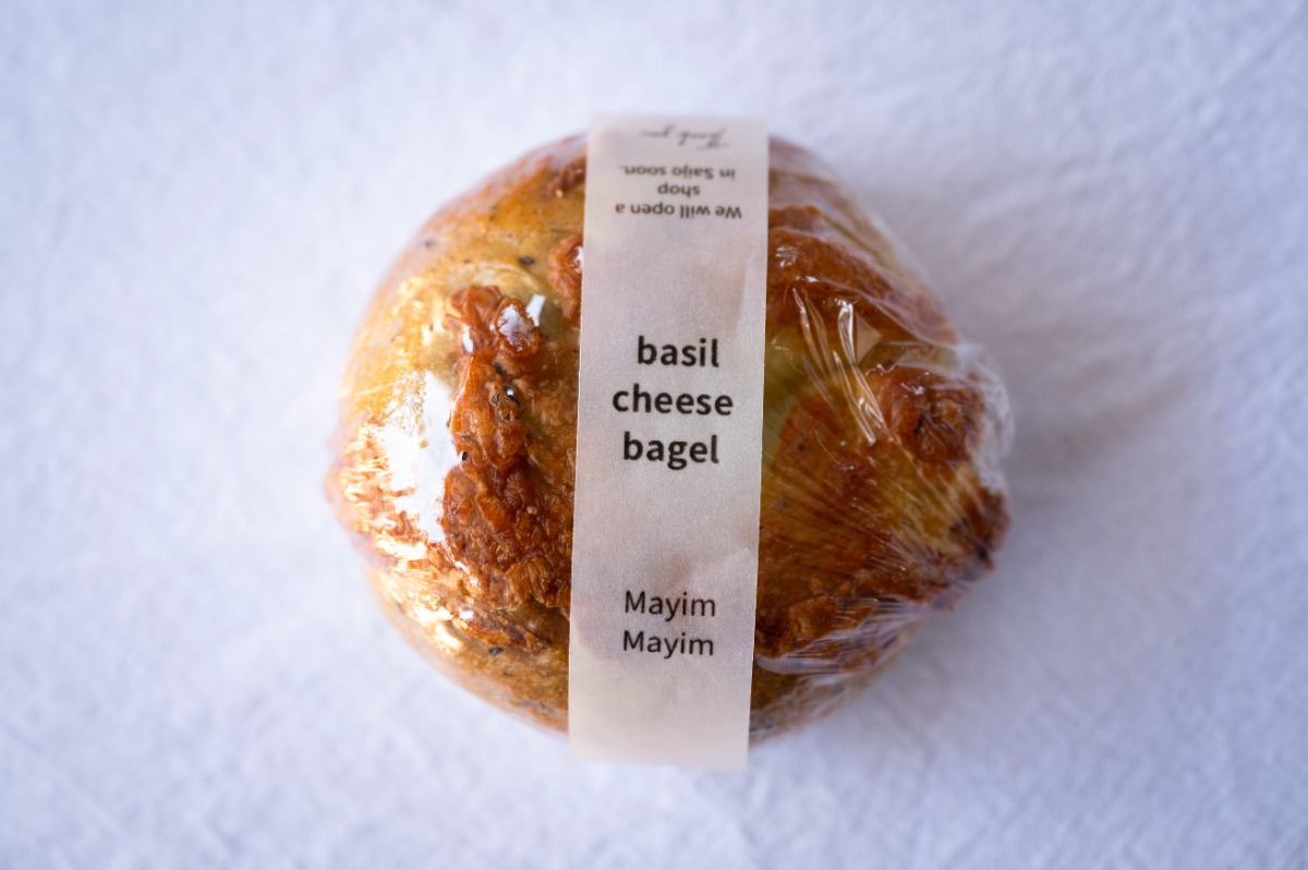 西条産のうちぬき水で水耕栽培された「生バジル」を使ったベーグル。