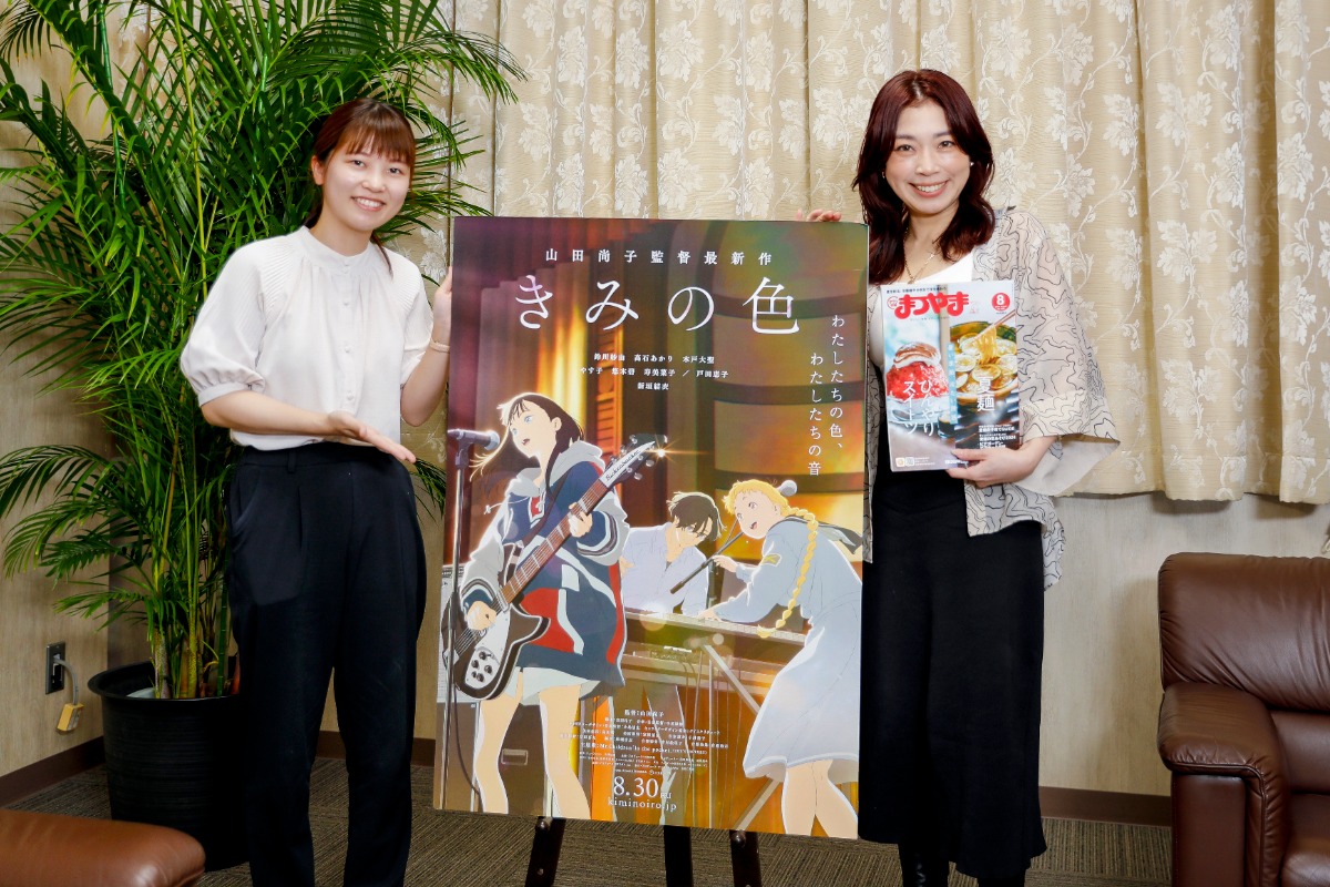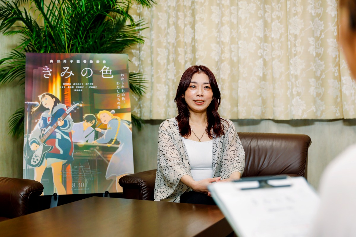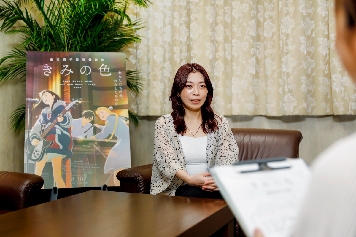8月30日(金)全国ロードショーの映画『きみの色』公開を前に、本作の監督を務めた山田尚子監督が来松しました。稀有な映像センスと、小さな心の揺れ動きさえも表現する繊細な演出で、今や全世界から注目を浴びるアニメーション監督の一人となっています。「音楽×青春」の集大成となる完全オリジナル長編最新作である本作への想いを、編集部たっちーがインタビューしました。