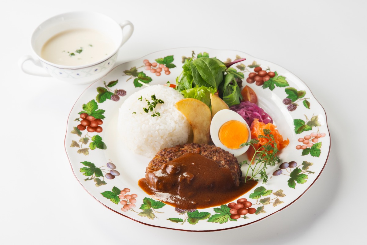 コクのあるデミグラスソースで仕上げたハンバーグに、サラダ・スープがセットになったランチセットです。