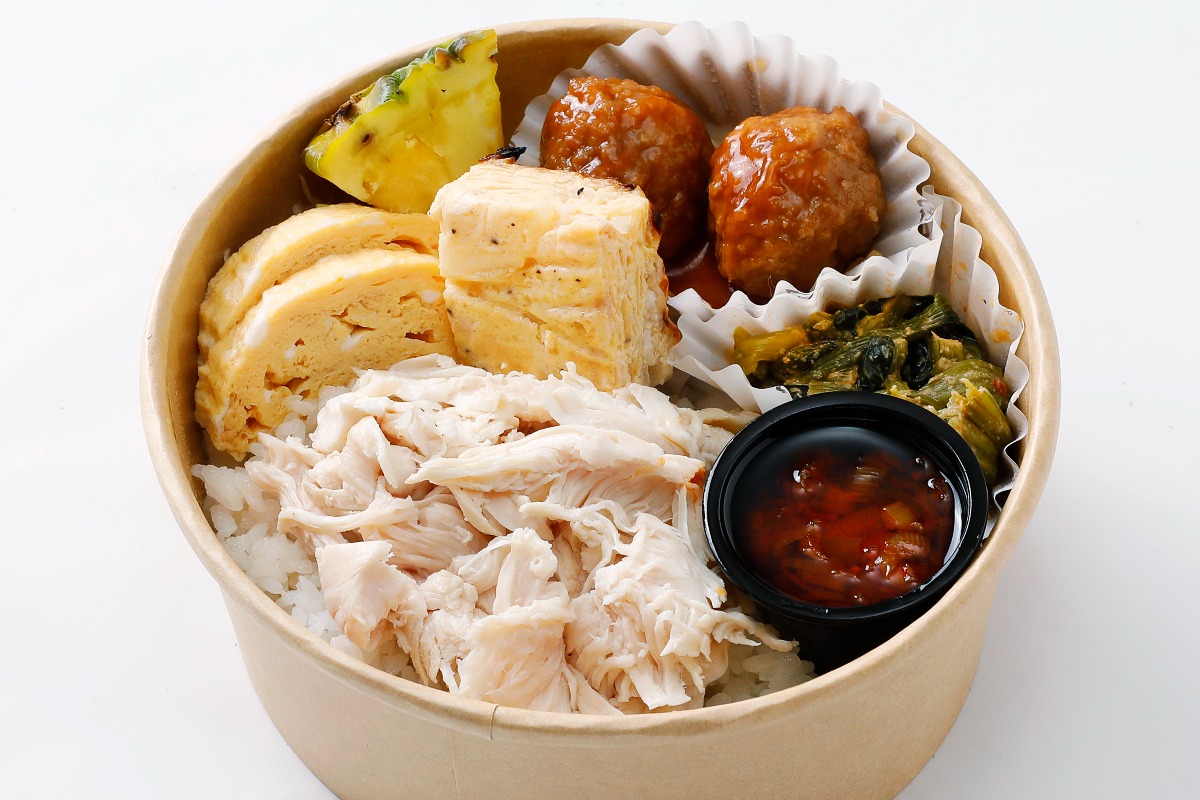 人気のテイクアウト弁当専門店が移転オープン。写真の「鶏めし丸弁当」は低温調理した鶏ササミに、ラー油のきいたネギダレをかけて食べる店の定番メニュー。タレが染み込んだご飯が食欲をそそる一品だ。日替わりおかずとスープが付く「ボックス弁当」も人気です。