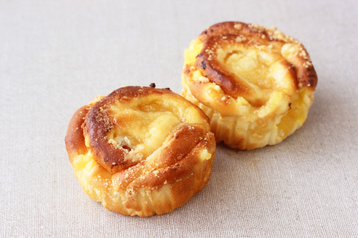 ふんわりとしたパンに鳴門金時とりんご、さつまいもクリームを入れ、メープルバターをのせて焼き上げています。