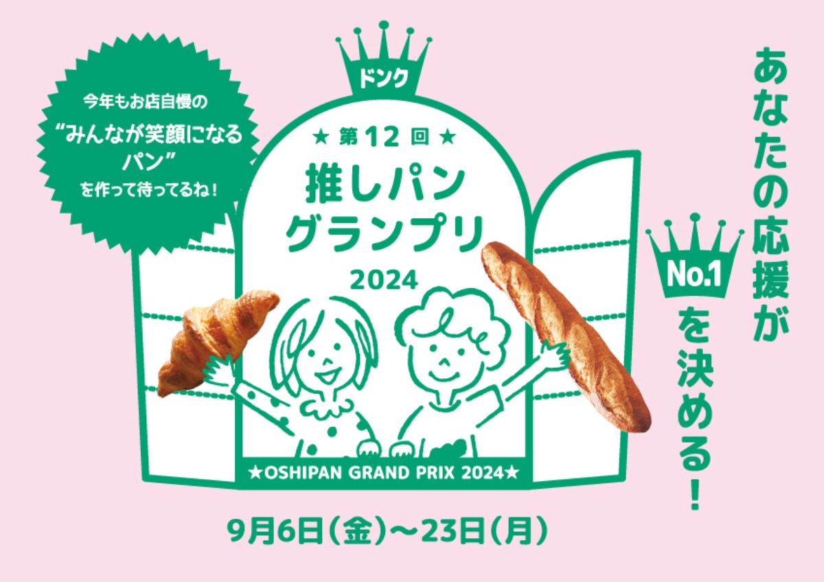 ドンク各店の職⼈と販売スタッフが⼀丸となり開発した⾃慢の“推しパン”の No.1 を、お客さんの応援で決定するパンの全国⼤会「第 12 回推しパングランプリ」を開催!