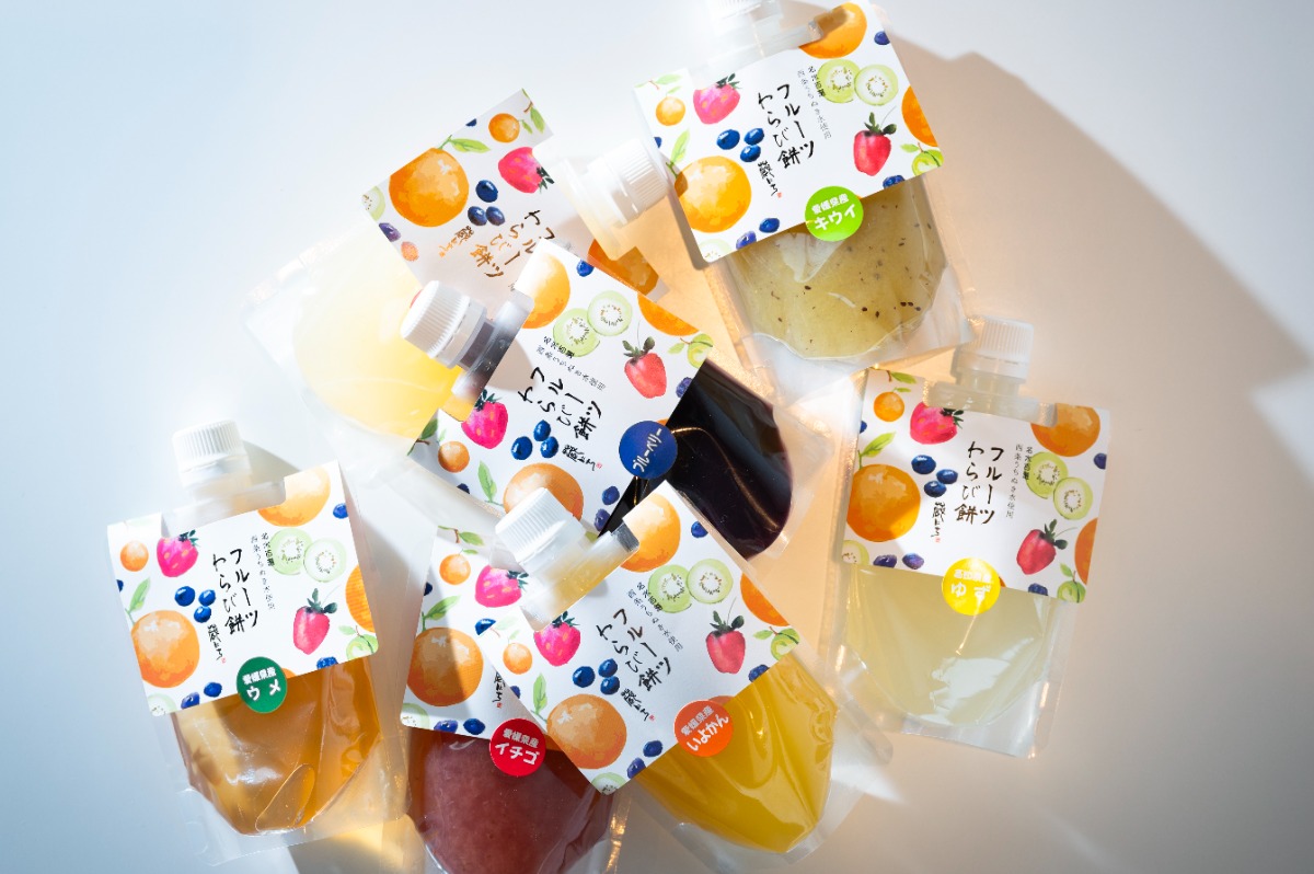 目を引くのはずらりと並んだ色とりどりのフルーツわらび餅。