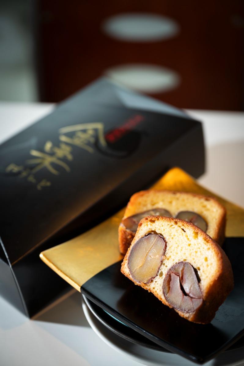 名水「うちぬき」の噴水を望む店舗には、こだわり素材のお菓子が並びます。